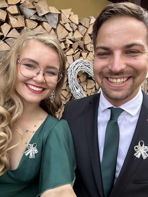 Nemáme stanovený dresscode, ale potěší nás, pokud si ke svému outfitu vyberete alespoň malý růžový doplněk – svatba je laděná do růžových tónů 💗